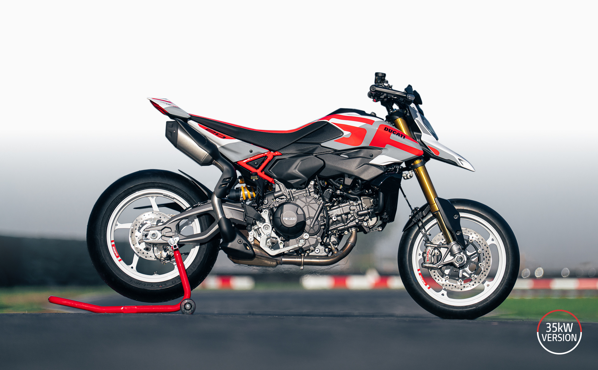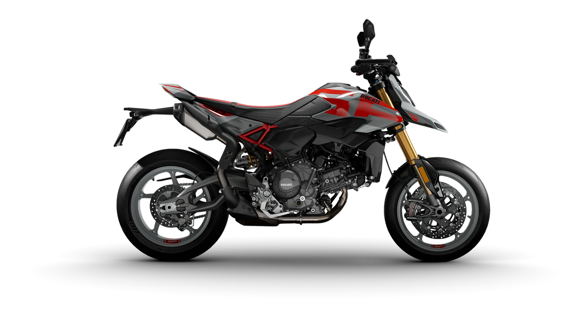 El ADN de la nueva Hypermotard se remonta al primer prototipo presentado en EICMA 2005, reconocido como Best of Show. De aquel ícono hereda elementos que definen su personalidad única: el faro delantero con el inconfundible “pico”, la tapa del tanque con doble ala, el doble escape bajo el colín que deja a la vista el subchasis tipo trellis y el faro trasero flotante. Líneas esenciales y agresivas que, aún hoy, transmiten la misma pasión por emocionar y romper esquemas.