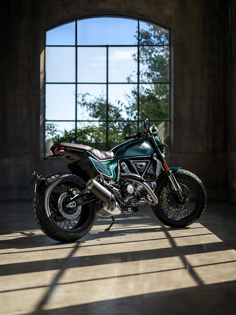 El Scrambler® Nightshift con su nuevo diseño verde esmeralda y un estilo único. Descubra la elegancia y sofisticación de la nueva paleta de colores.